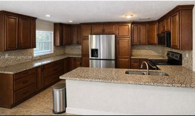 Welcome to this beautifully maintained home in the desirable Avalon community, offering 4 bedrooms and 2.5 bathrooms, plus an additional room and a full bathroom conveniently located downstairs. Youll immediately notice the soaring vaulted ceilings and abundant natural light pouring in through impact windows, creating a bright and airy feel throughout. The open-concept layout provides an inviting space ideal for everyday living. The stunning kitchen features granite countertops and ample space f...Welcome to this beautifully maintained home in the desirable Avalon community, offering 4 bedrooms and 2.5 bathrooms, plus an additional room and a full bathroom conveniently located downstairs. Youll immediately notice the soaring vaulted ceilings and abundant natural light pouring in through impact windows, creating a bright and airy feel throughout. The open-concept layout provides an inviting space ideal for everyday living. The stunning kitchen features granite countertops and ample space for cooking and gathering. Stylish, contemporary bathrooms add a modern touch to the home.Spacious backyard oasis with mature mango and avocado trees perfect. Ideally located close to parks, shopping and major highways, this home offers flexibility and convenience all in one.